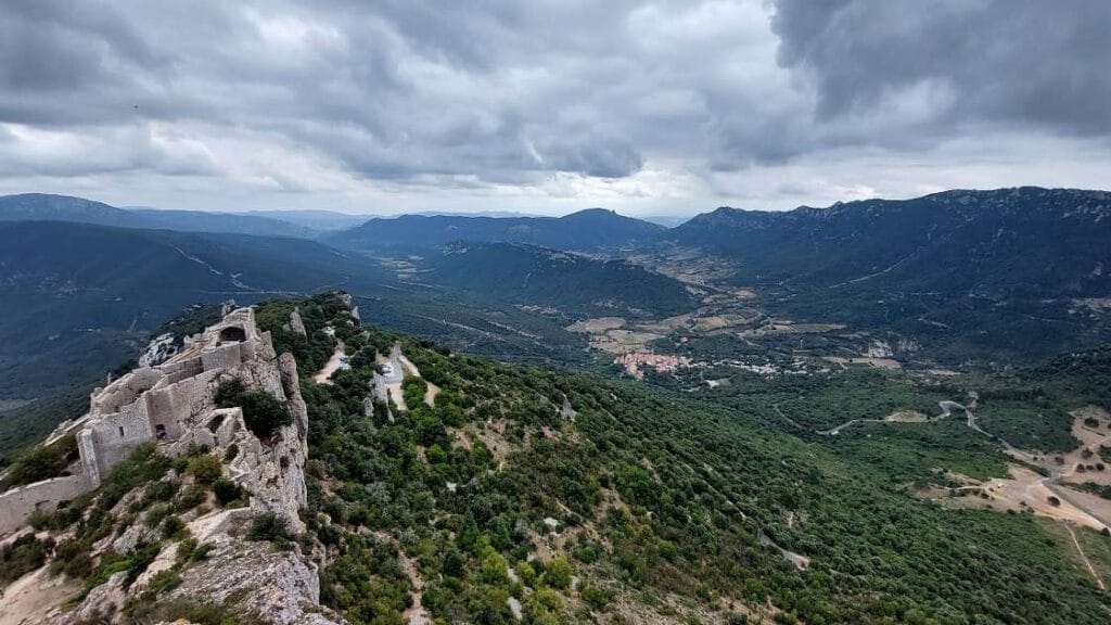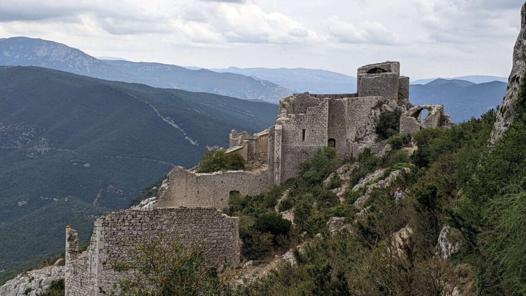 We decided to head east in the French Pyrenees, last summer. Partly to dodge the weather and partly to investigate this region a bit more. And it was a good move! We ended up in Cathar country. A beautiful area with narrow, winding roads, numerous castle ruins perched on mountaintops, charming villages, and a wonderful Mediterranean climate. In this blog post, we share three cycling highlights. These are also easily accessible on foot. And you can certainly ask to include these destinations in your personal itinerary.